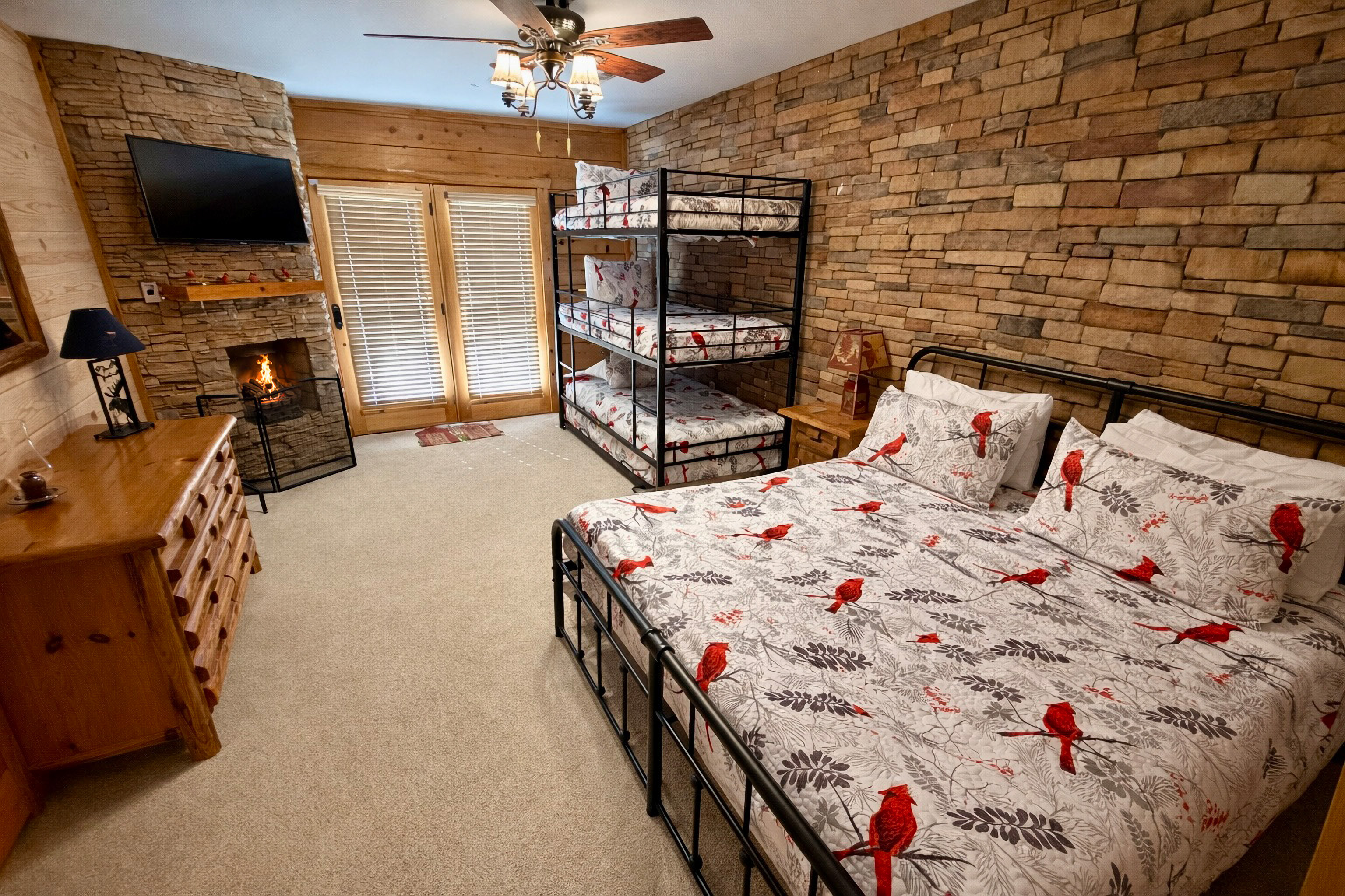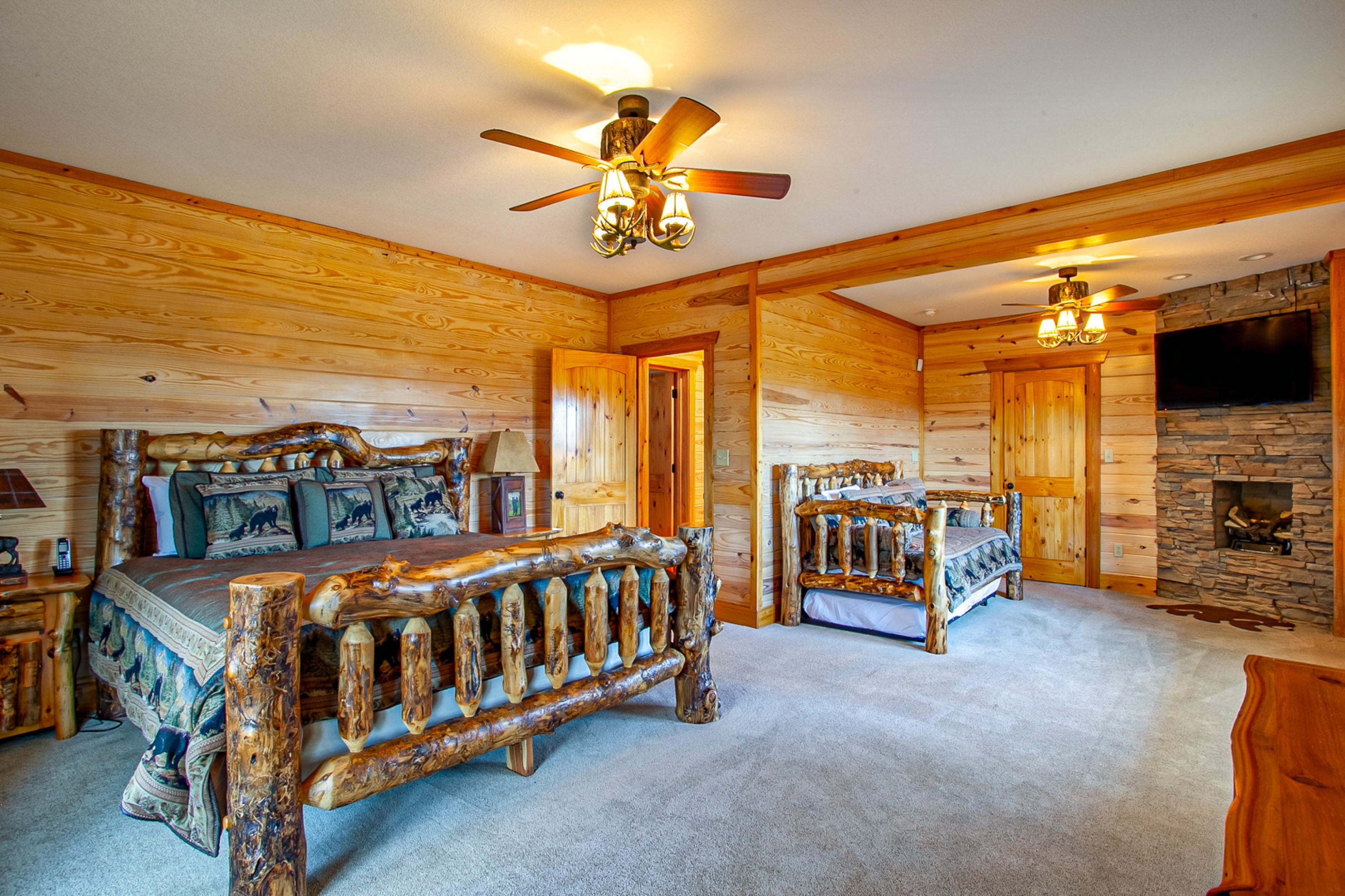 • 5th Bedroom: on the lower level w/ King Bed, Twin Bed w/ Twin Trundle, Gas Fireplace, & 48” Smart TV.
