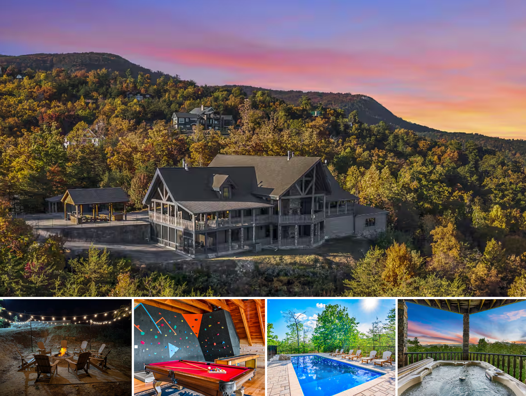 Majestica is a multi-million-dollar private mountain estate that will provide you a millionaire's stay at an affordable price!!! This is a luxury retreat will surpass any cabin you will find in the Smoky Mountains in quality and luxury. The spacious decks provide BEST IN CLASS Smoky Mountain views from every angle that will leave you speechless! The entertainment & incredible amenities make this spared no expense Luxury Estate a highly desired destination! Majestica is nestled in the Summit, an upscale neighborhood with carefully manicured landscape. You will enter the property gates to the very private and secluded Majestica estate where your party will enjoy a private outdoor pool, wall-to-wall windows in the multi-story great room, indoor rock wall, a theater room, a 4-player air hockey and commercial grade arcade machines, hot tub, an elevator for accessibility, outdoor fire pit, and more! Main floor is wheelchair accessible and provides elevator access.